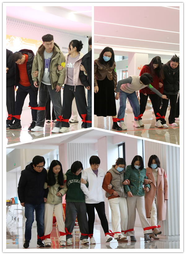 活动在一片欢声笑语中拉开帷幕。参加活动的员工随机抽签分为红黄蓝绿四组,每组队员相互配合,共同参加闯关游戏,最终以累计“福气分”最多的小组获胜。