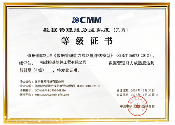 经中国电子信息行业联合会的专业评估,近日榕基软件全资子公司福建榕基软件工程有限公司(文中简称:榕基工程公司)获得国家数据管理能力成熟度(dcmm)稳健级(3级)认证。